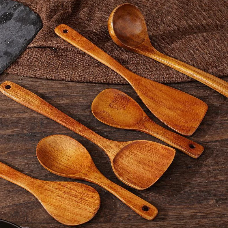 ไม้พายสำหรับกระทะไม่ติด ช้อนตักอาหารไม้ทนความร้อนเหมาะสำหรับผัดและตักข้าว