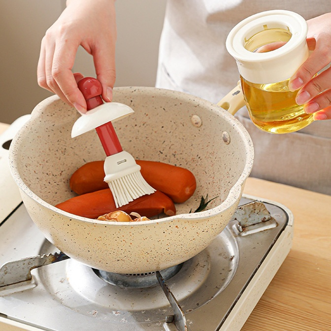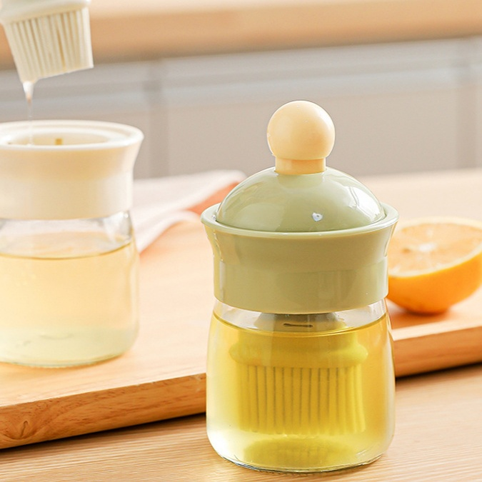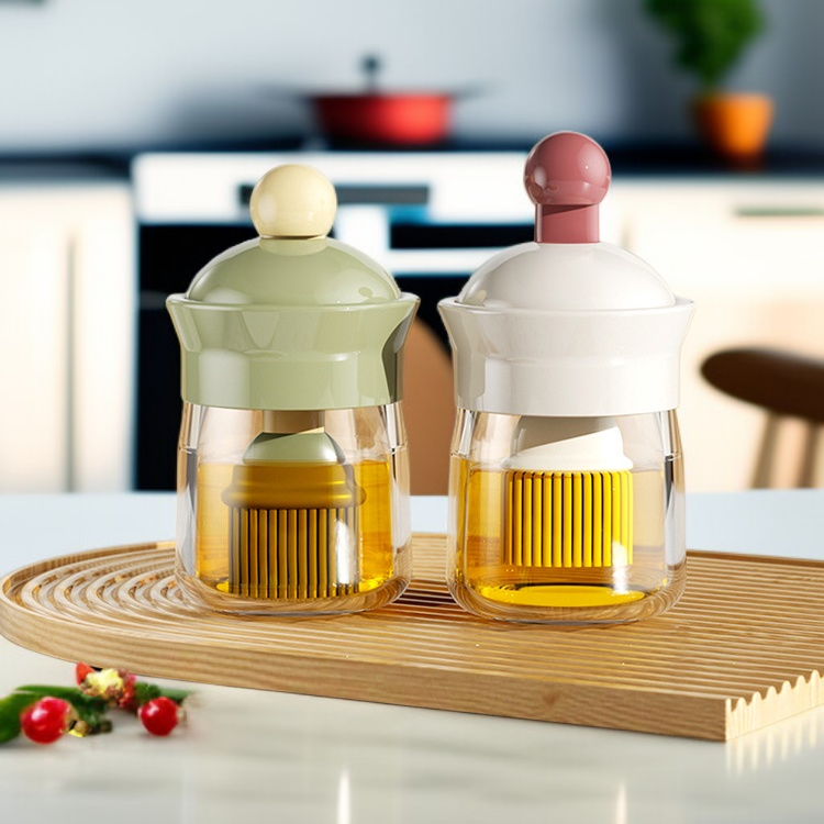 ขวดน้ำมันแก้วทนความร้อนพร้อมแปรงซิลิโคนสำหรับใช้ในบ้าน